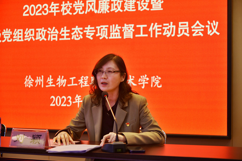 刘颖用“四个坚持”对今年的党风廉政建设工作进行了总结,并围绕“强化责任担当、忠诚履职尽责,纵深推进全面从严治党”这一主题,就学校开展好党风廉政建设工作提出三个方面的意见:一是依规治党,保证党中央集中领导和党的团结统一;二是扛起责任,落细落实全面从严治党战略部署;三是提升效能,健全基层监督责任体系。最后,她对下一阶段落实二级党组织政治生态专项监督工作、开展廉政风险点排查、推进廉洁文化建设等工作提出了具体的工作要求。