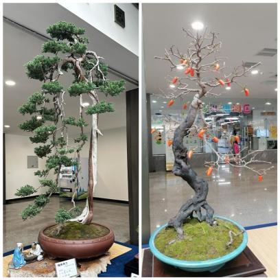 一盆之内,方寸巍峨。走进展览现场,一株株风格迥异、精雕细琢、姿态万千的精美盆景映入眼帘。同学们兴致勃勃地聆听了李彭、董书林等多位老师关于盆景类型、艺术特点、制作步骤、修剪技艺等内容的细致讲解,在图书馆的书香氛围中与盆景交谈,与艺术对话。徐州市收藏家协会盆景分会会长田中军老师介绍说,盆景艺术起源于中国,一景一树都深深地镌刻着华夏文明传承千年的烙印,是匠人匠心的极致体现;作为相关专业的大学生,在学好课本知识的同时,一定要注重实践动手能力的提高,培养工匠精神。同学们纷纷表示不虚此行,不仅拓展了视野,拉近了与市场、行业之间的距离,更对盆景文化有了深入了解,对未来的专业学习和实习就业产生了美好愿景。