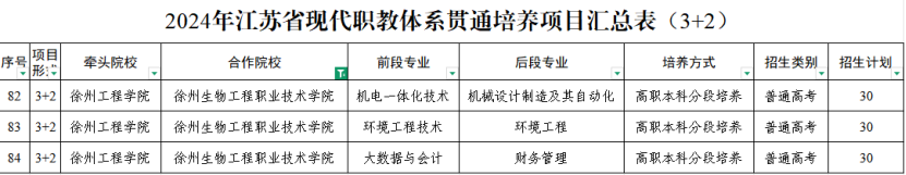 2024年5月,江苏省教育厅发布了《关于公布2024年现代职业教育体系贯通培养项目的通知》(苏教职函〔2024〕17号)。其中,我校与徐州工程学院合作的3个专业的“3+2”分段培养项目成功获批,分别为机电一体化技术、大数据与会计和环境工程技术专业。学校坚持立德树人根本任务,以提升专业服务产业发展能力为出发点,与徐州工程学院多次沟通研讨,形成了定位准确、内容科学、设计合理、现实可行的高职与普通本科联合培养方案。下一步学校将充分发挥徐州工程学院的办学资源与特色,以现代职教体系贯通“3+2”分段培养项目试点为抓手,实现优势互补,资源共享,师资融通,平台共建,凝心聚力为学生发展搭建优质平台,切实满足学生就业和可持续发展的需求。