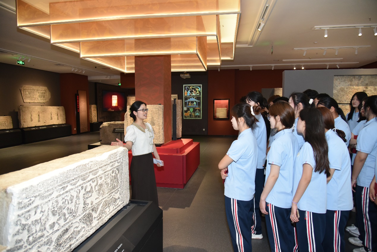 随后,在博物馆讲解员的带领下,学生代表们开启了一场沉浸式的文化之旅。通过丰富的实物展品、生动的图文资料和现代化多媒体技术,同学们近距离感受两汉文化的历史魅力。同时,我校思政课教师以“徐州汉画像石融入思政课”为主题开展了微课教学。多名沛县定培村干班学生表示,这堂“博物馆里的思政课”不仅增强了他们对家乡历史文化的深入了解,也进一步坚定了自己扎根农村、服务基层的信念。